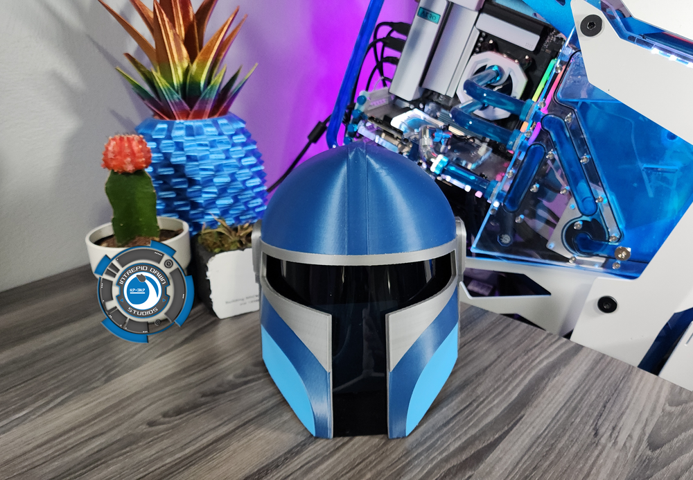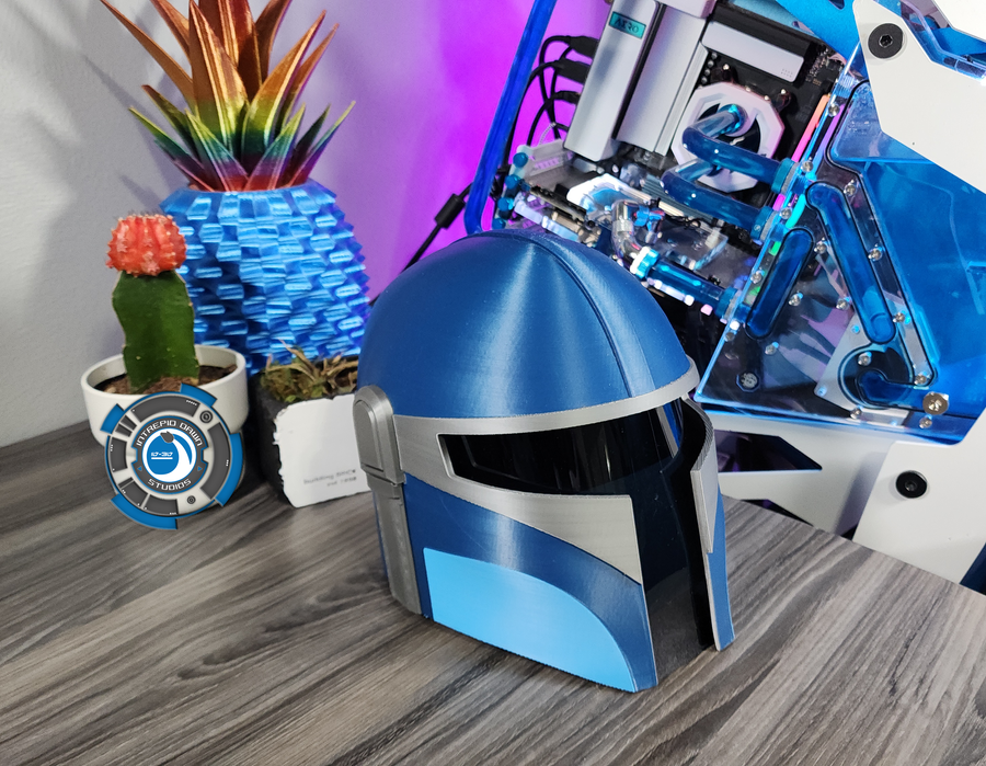 Our Bo Katan Helmet, printed using premium PLA+, is designed to mirror the original piece accurately. Its design allows for the Rangefinder to be lowered and raised into position, while the side accessories can be easily attached with glue/epoxy.